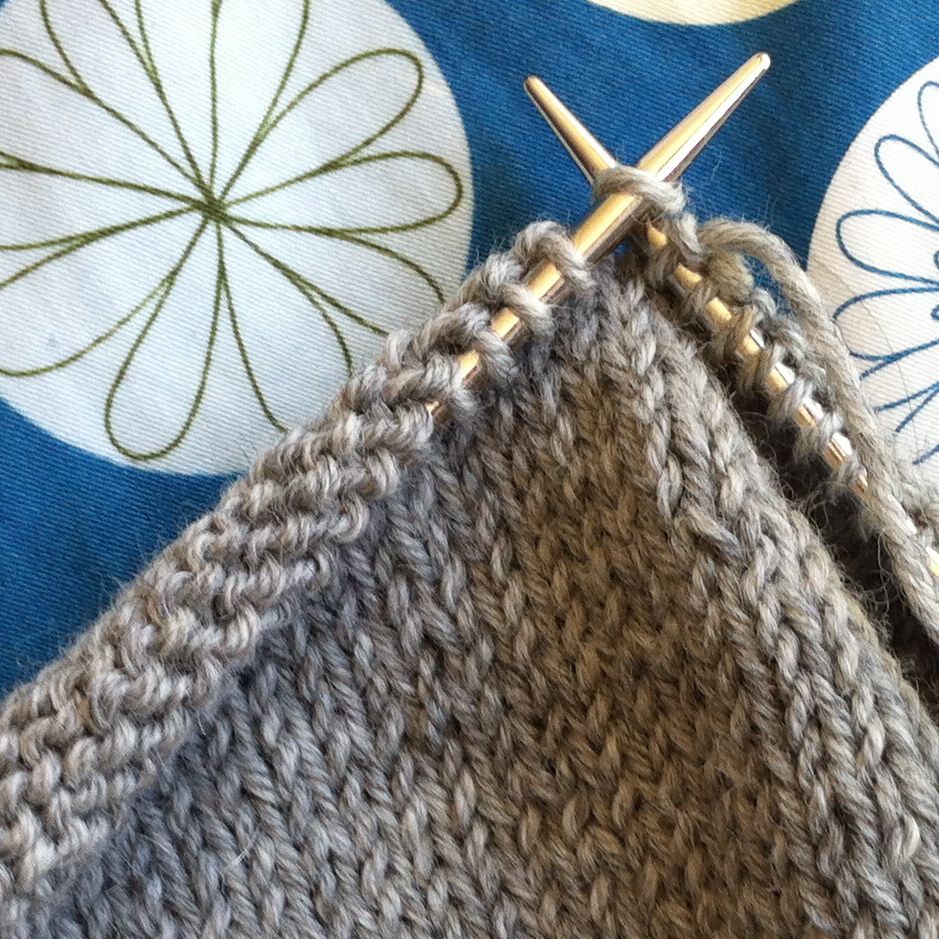 This is an internet-based swap so I don’t know what this little fellow’s complexion is like. I picked up some neutral grey DK yarn and navy buttons (which I now think will be too big!) at the Spotlight sale yesterday, and it’s coming together nicely.