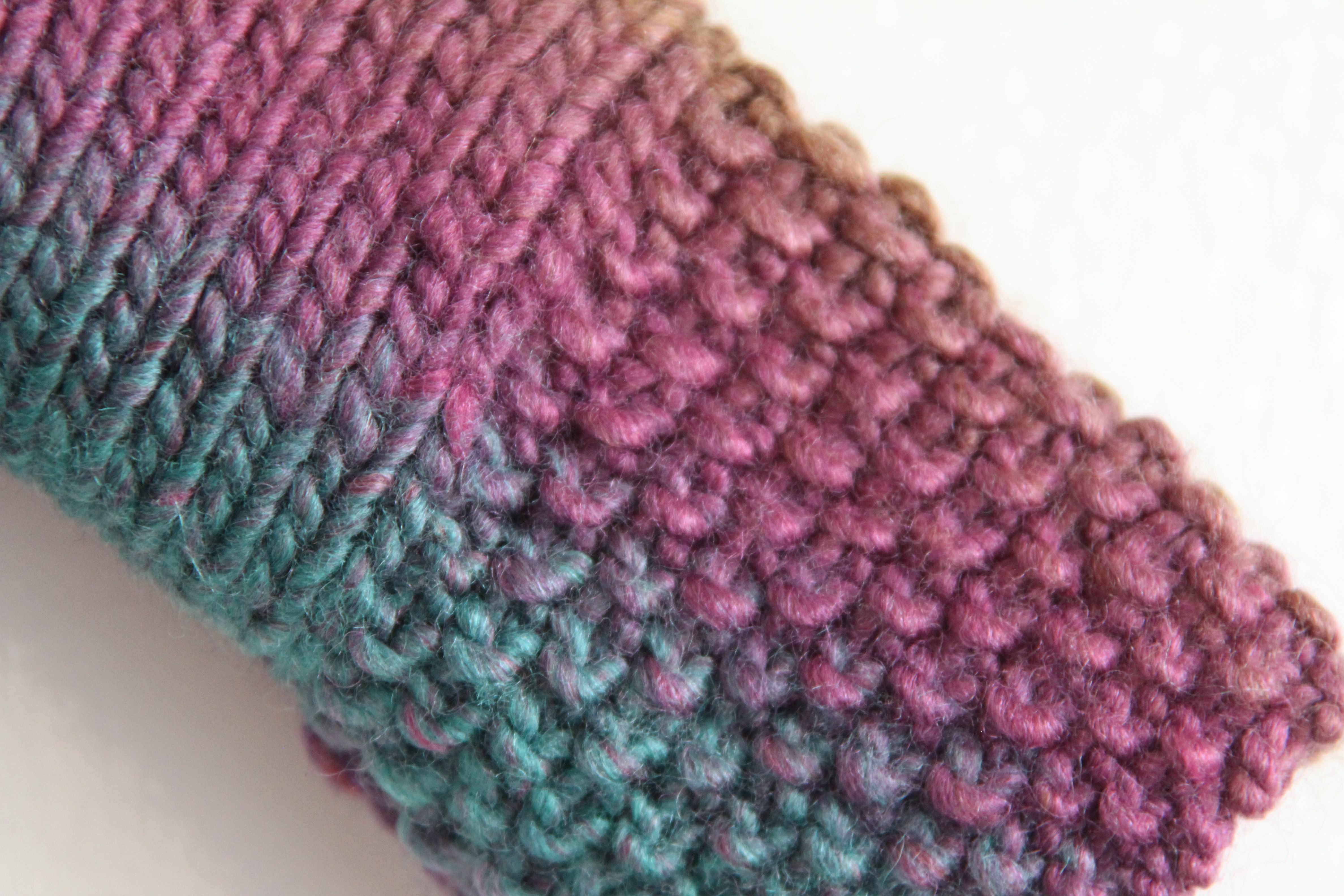 I knitted this one in Wisdom Yarns Poem Silk (a 10 ply wool and silk mix), colourway 802. I had a terrible time matching the colour variations when I rejoined the yarn to knit the second side of the front – next time I won’t use a self-shading yarn! Next time I’ll also count my rows as well as measuring – some of my edgings were a bit off.
