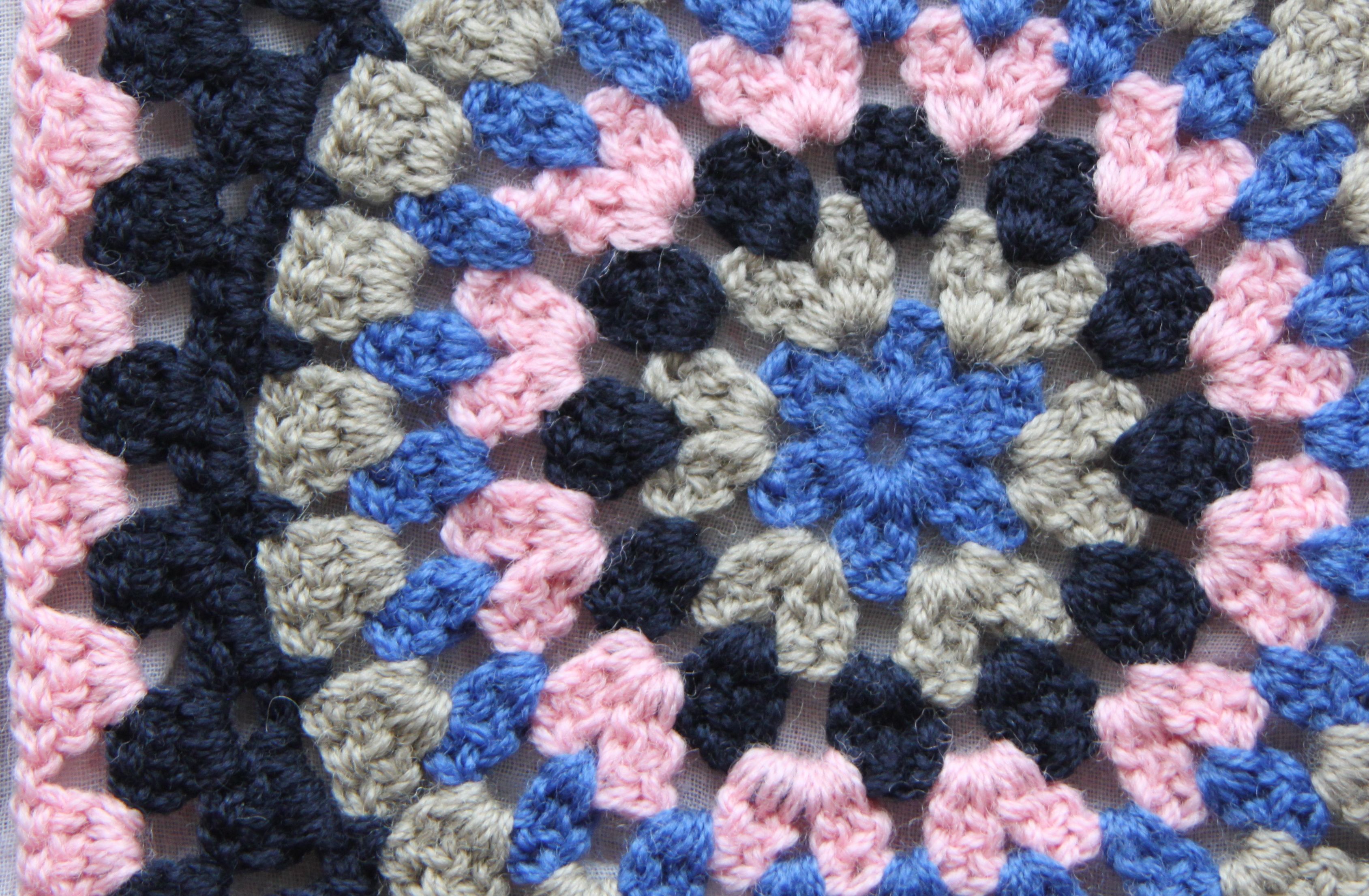 I’ve made my squares with DK (8 ply) weight yarn, adding an extra round to bring them up to the 8″ (20cm) required of contributions to Woollies for Tassie. As far as my sleep deprived brain can tell (the tutorial doesn’t specify, I don’t think), the pattern is written using US crochet terminology. Well, there are half double crochets (hdc) in there and I don’t think they occur in UK patterns. I’m going by the crochet terminology conversion chart here.