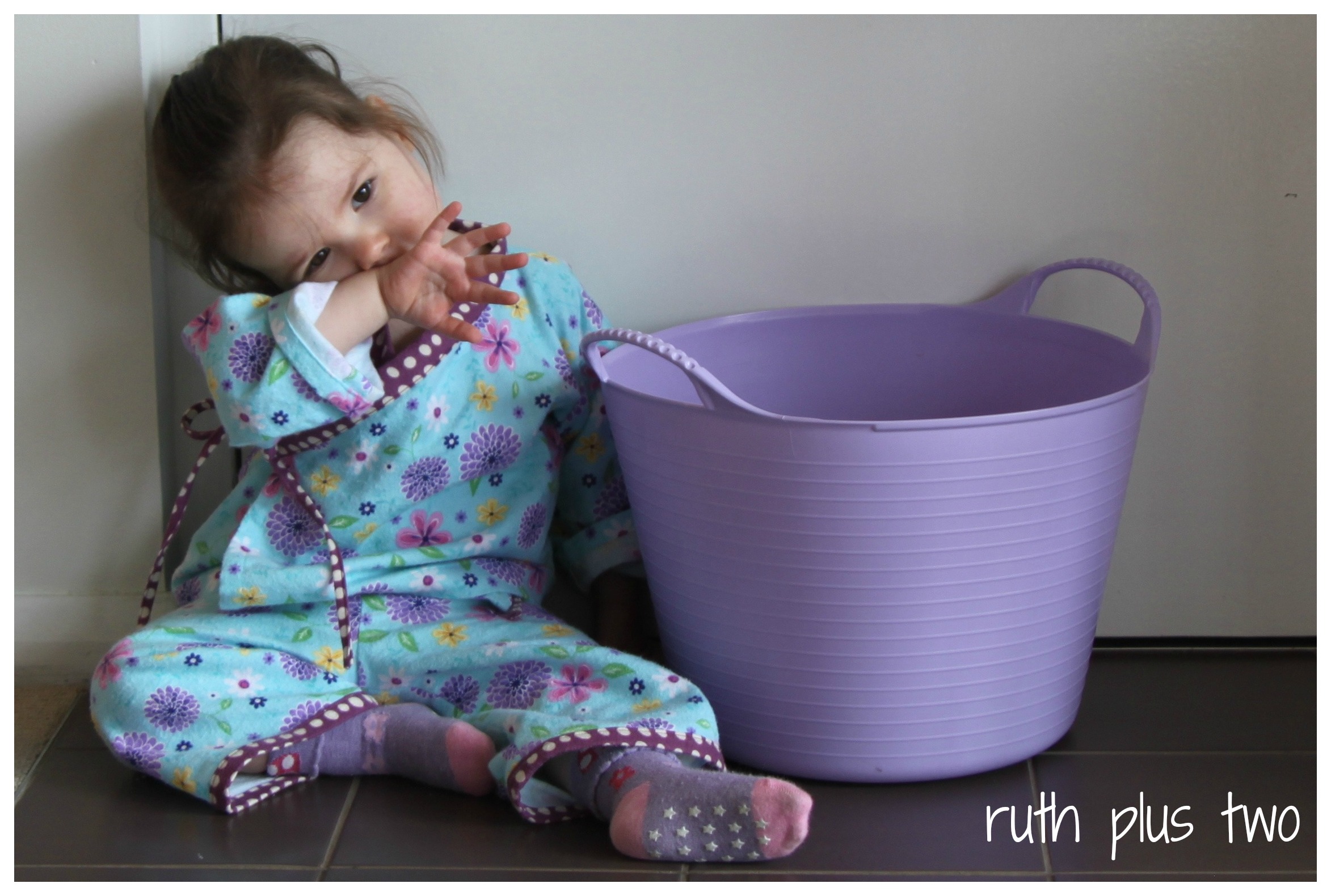 IMG_2146 wm fr At this point I’ll add that this is Elena’s dirty clothes basket which she dragged out from her room. Complete coincidence that it co-ordinates with her pjs. Promise!