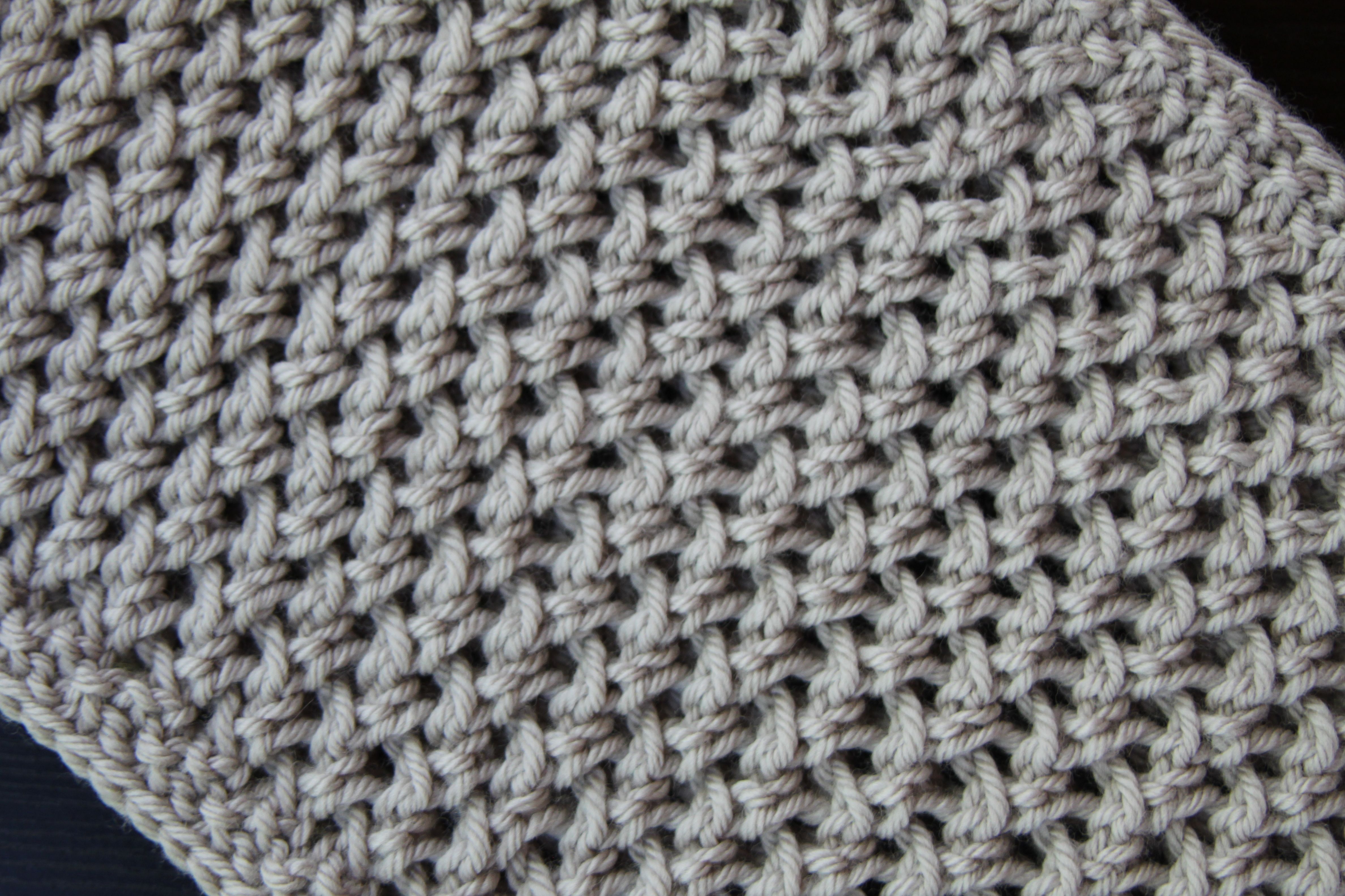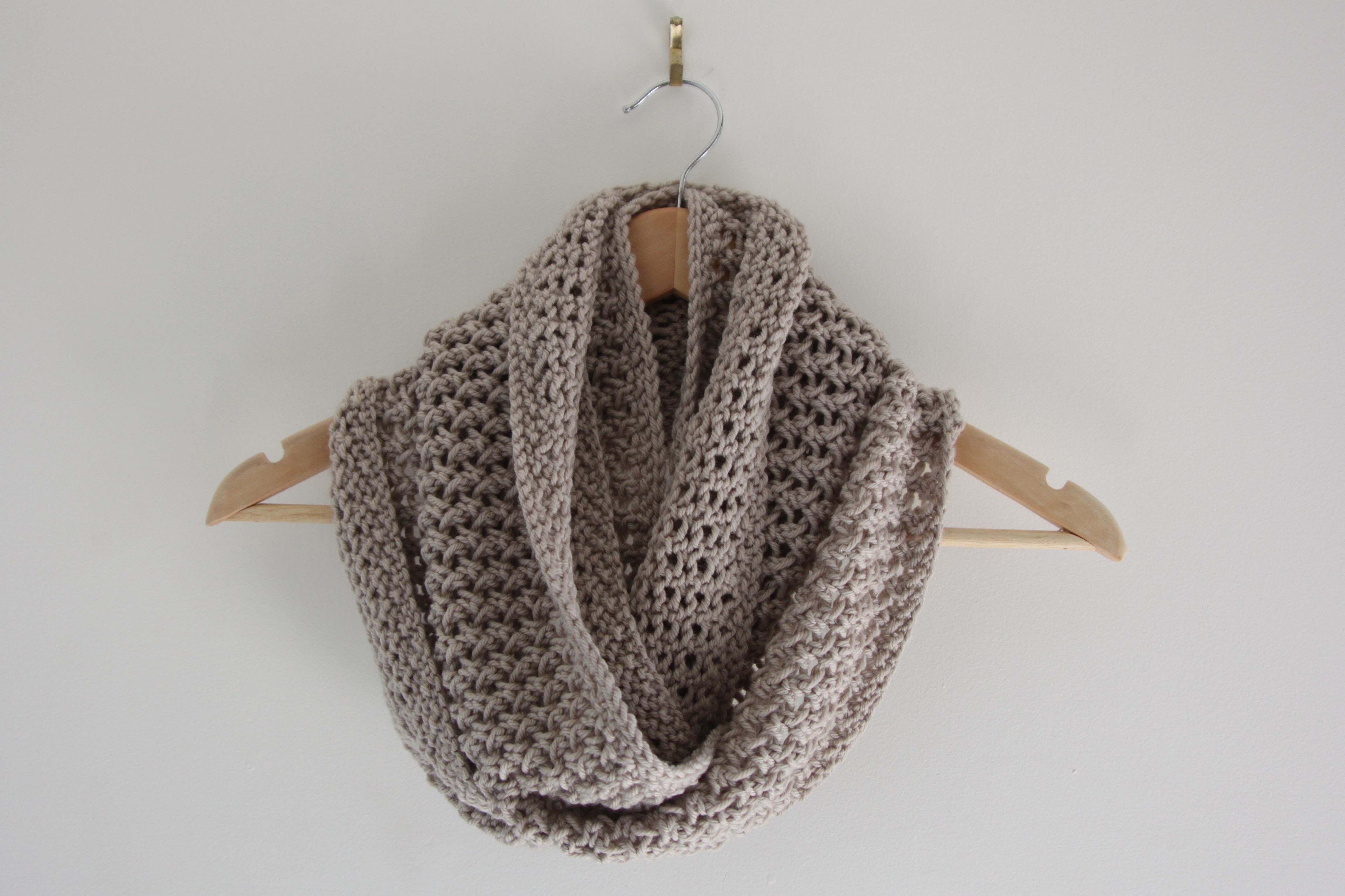 I found the 5th Avenue Infinity Scarf pattern and cast on with Bendigo Woollen Mills Luxury 12 ply in Stone.