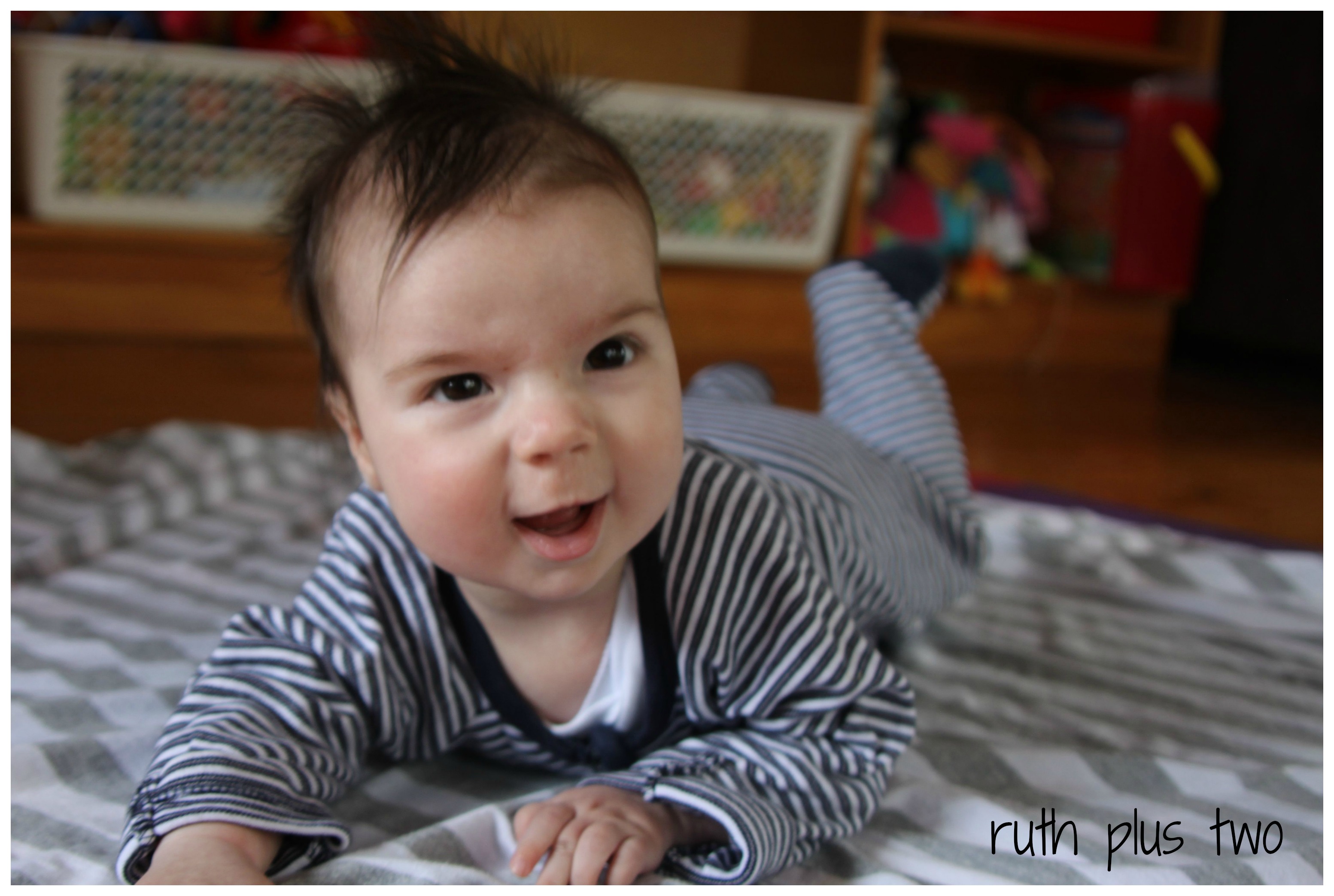 smilesAnd guess who rolled over for the first time today? That’s right – not-so-little Hugo!