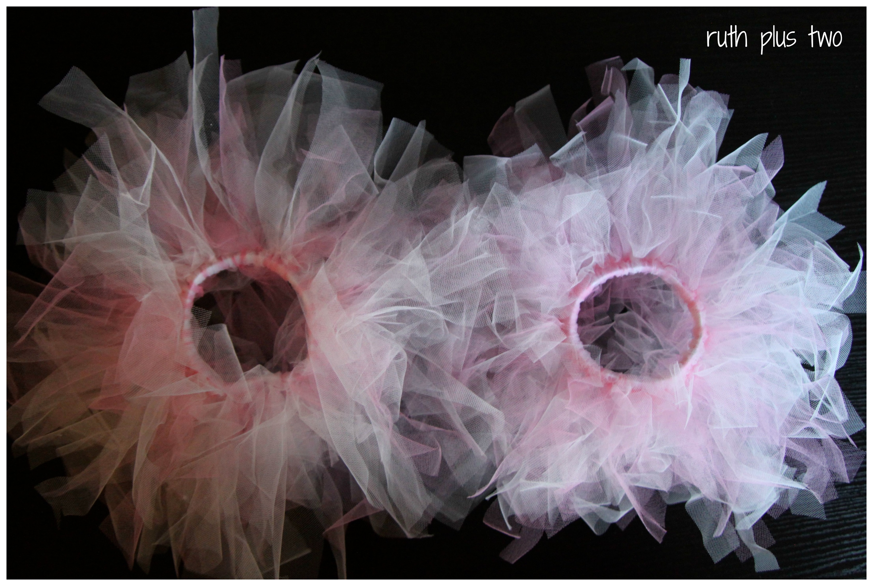how toThe tutus I made were so ridiculously easy I thought I should share the method. There are probably a million ‘no sew tutu’ tutorials online, but I experimented a little and thought the different effects were worth sharing, as well as a tried and true set of dimensions for a doll-sized version.Β The hardest part of the whole exercise was cutting the tulle into neat strips (handy tip: a rotary cutter, a quilting square and a sleeping toddler made it much, much easier).