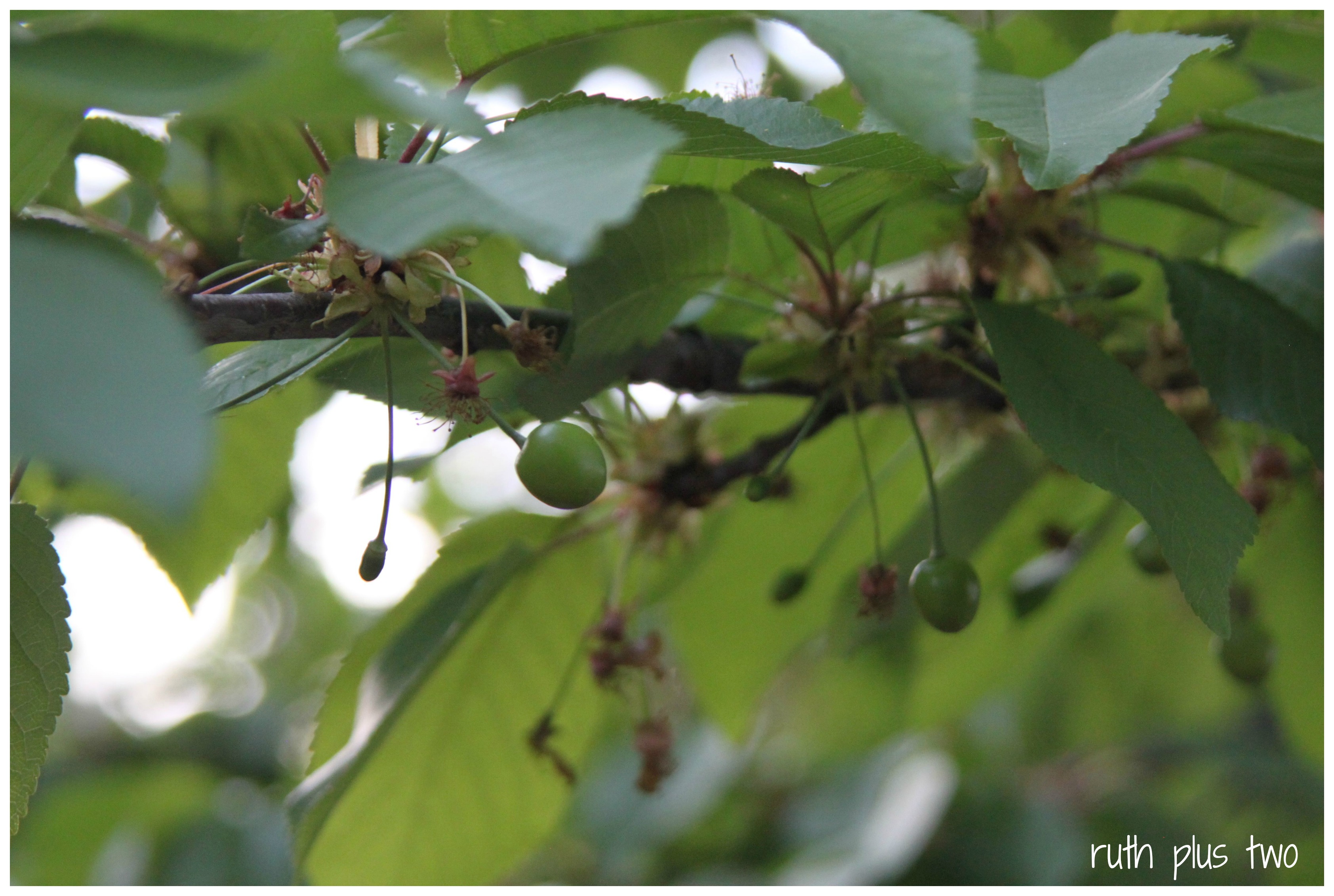 cherriesThey’re rather cute. I wonder how many we’ll get to eat and how many will end up with the birds? The tree is far too big to net. We’ll have to give it a good prune next winter.