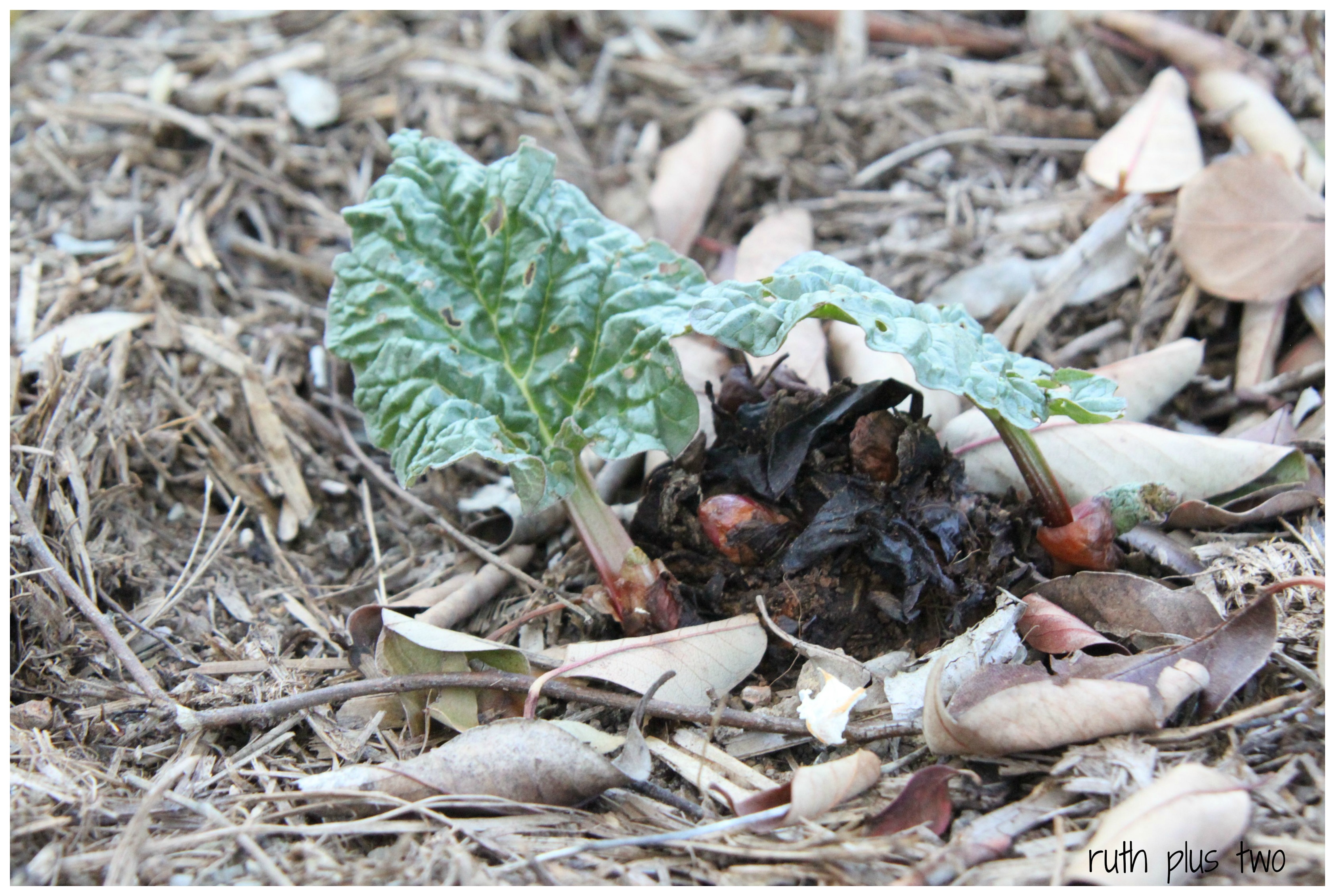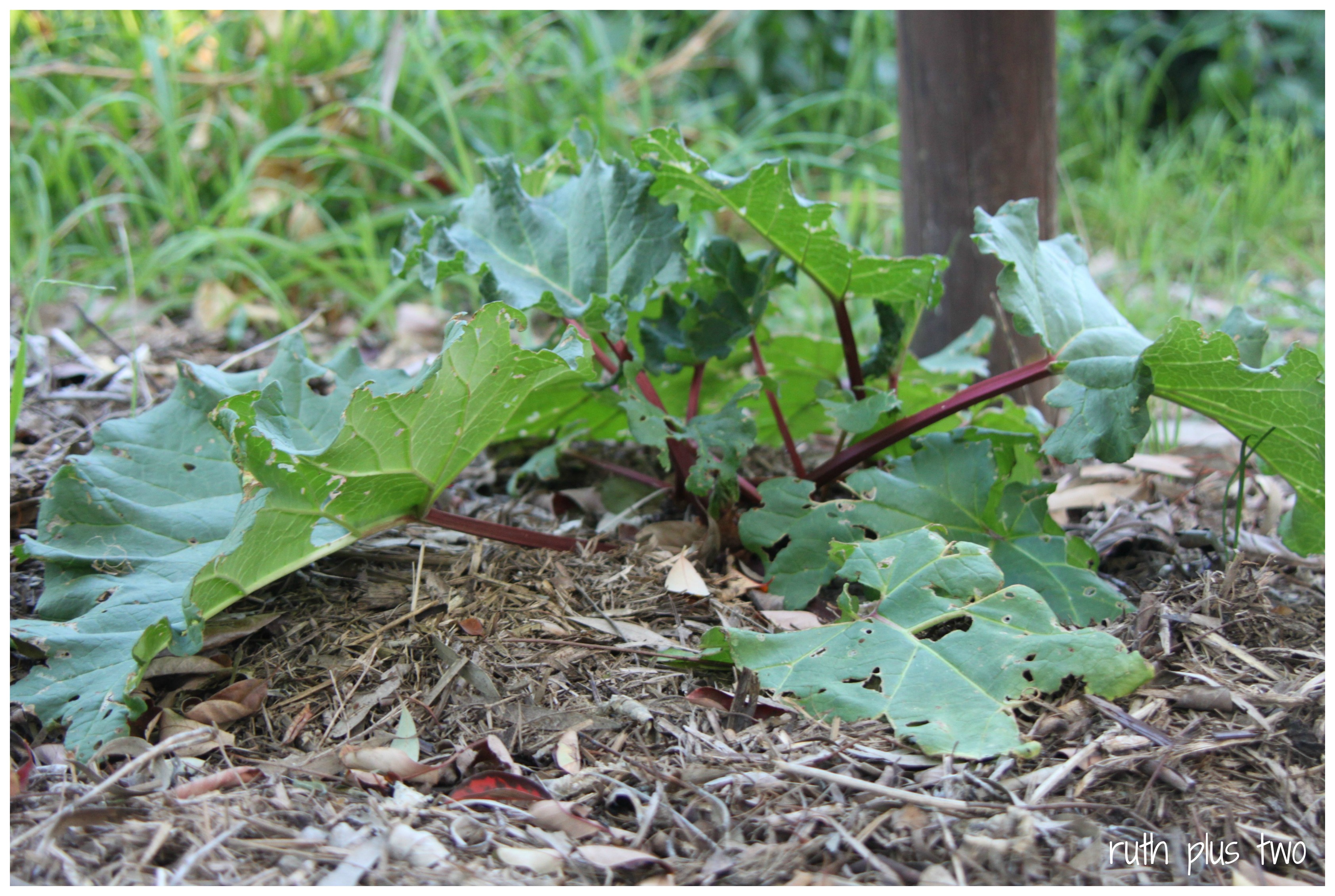 rhubarb 1 rhubarb 2I’m really enjoying watching all the flowering plants bloom and discovering what colour the flowers are. So far, we have pink roses, red and pink camellias, and a white banksia rose.