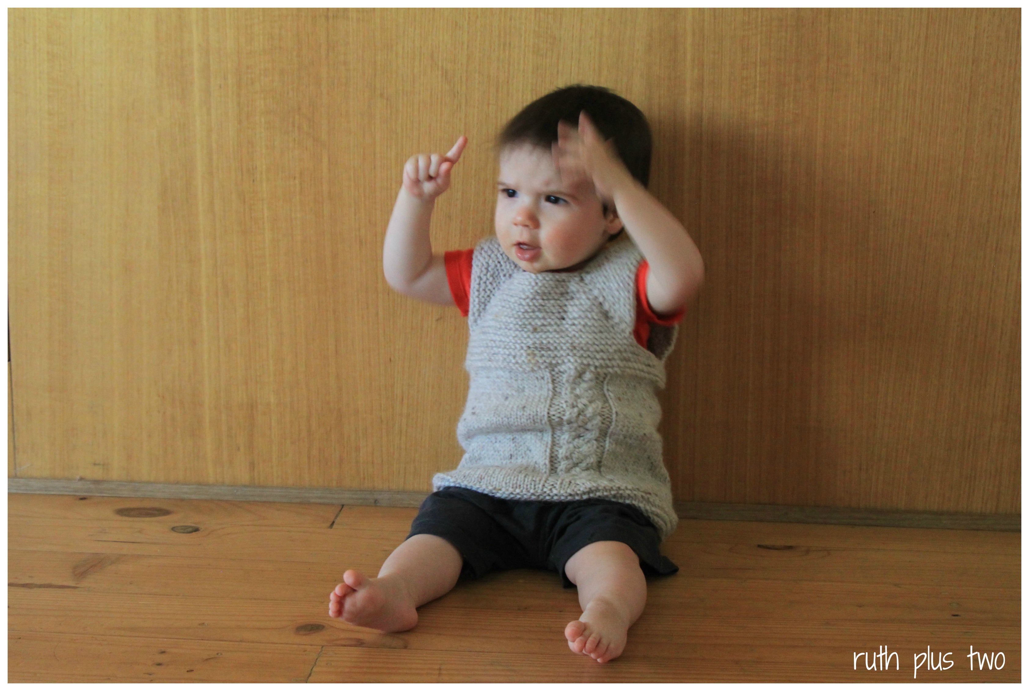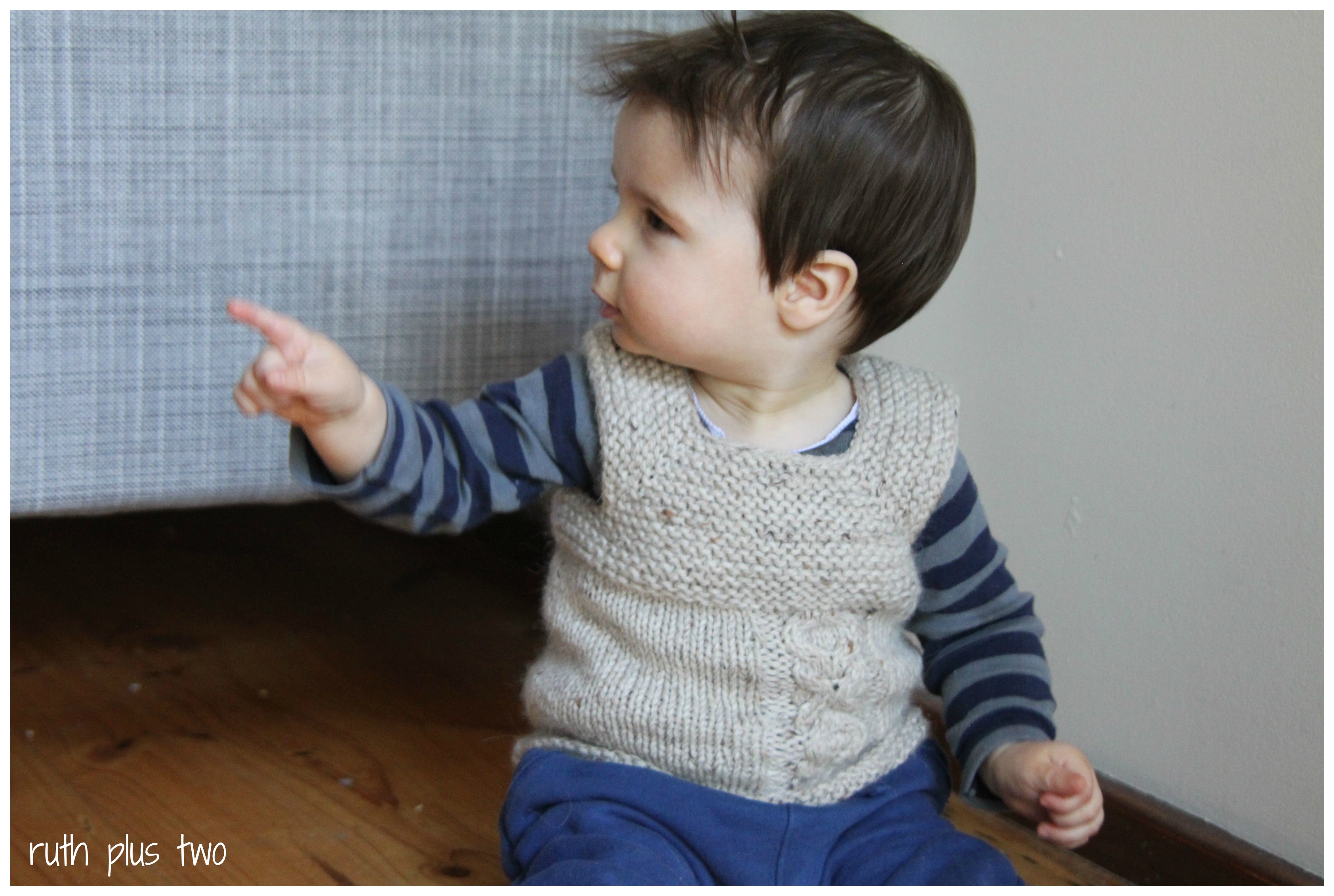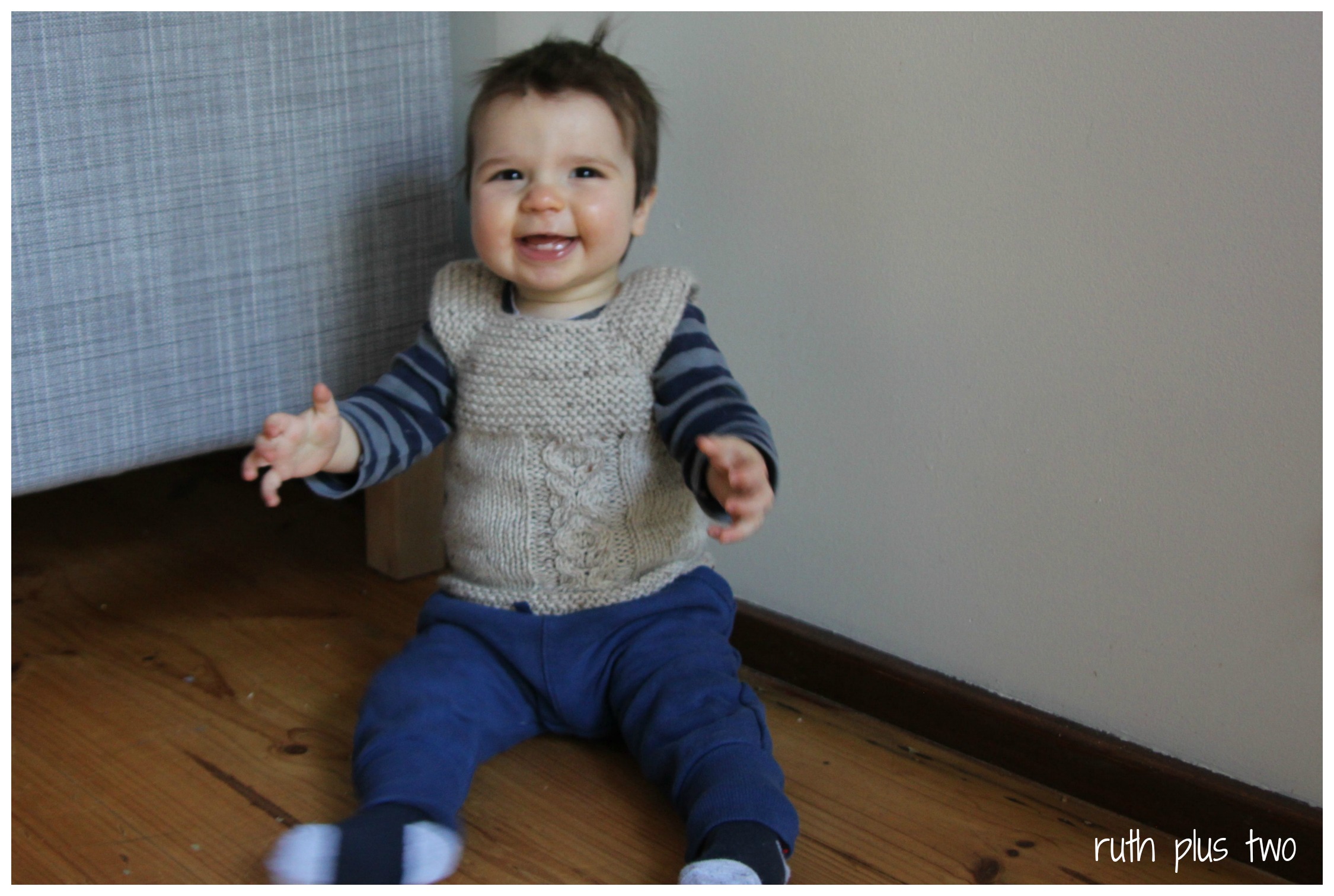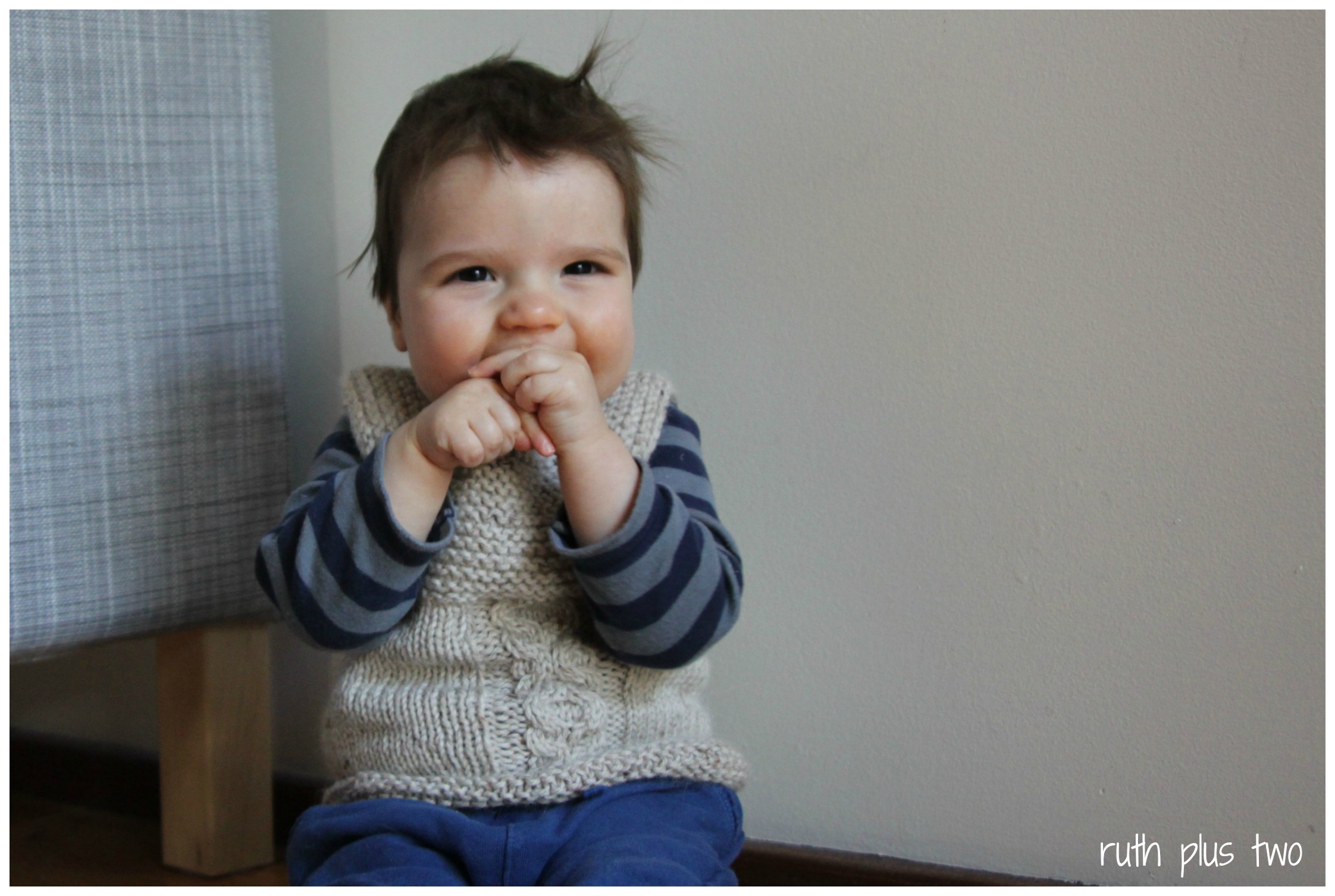 oxoxHere are my knitting notes, just in case you’re interested in knitting a Milo in 10 ply: after casting on for the newborn size, I cast off for sleeves when the stitch count was 30/25/30/25. I cast on 8 for under arms, and repeated the knit/purl 3 times for a total of 8 rows, increasing 10 in the next round. I started the cable set up after 18 stitches, but I should have done so after 20/22 stitches. The vest’s chest measurement is 18 inches. I knitted to the length specified for the 6 month size.
