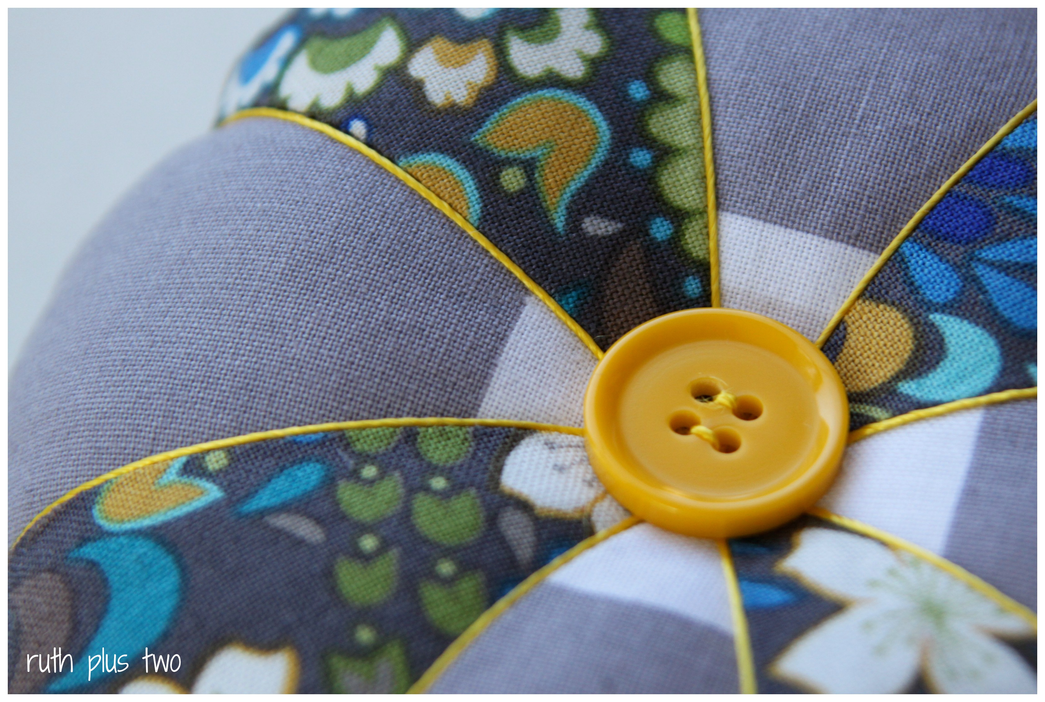 pin cushion 2Anyway, an upside of my Friday evening was this sweet little pin cushion. I often end up chasing my pin cushion around the house. I do my fabric cutting on our dining table, and my sewing in a little room off our living area. When I’m in the middle of a complex pattern, I often end up walking between the two to retrieve my pin cushion. Two pin cushions solve this (first world) problem.