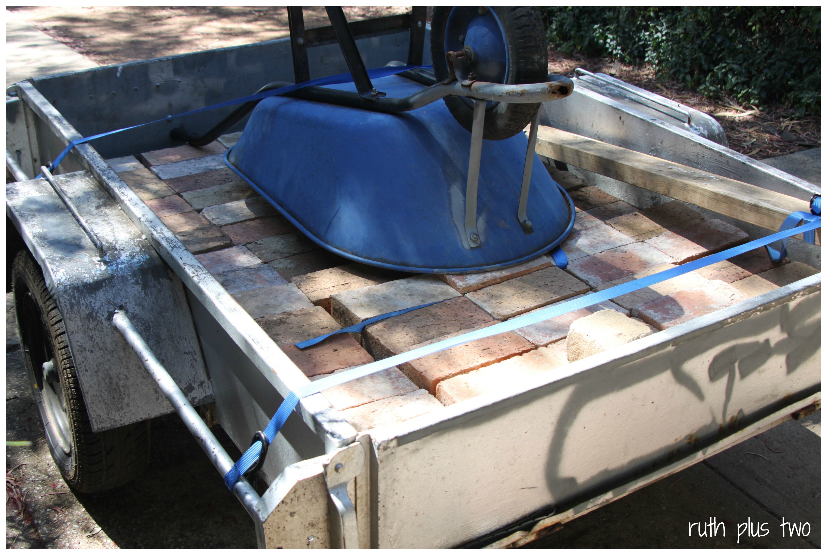I had considered calling this post ‘Why I love Alex’, but I thought that was a bit soppy. But anyway, this picture represents one of the reasons why I love Alex. He accommodates my crazy ideas and is usually willing to come along for the ride. I found a listing on gumtree (Australia’s version of Craig’s List) for free bricks and pavers…and Alex was sweet enough to volunteer to go and pick them up for me. It was a hot day and it took two trips. That’s love for you.