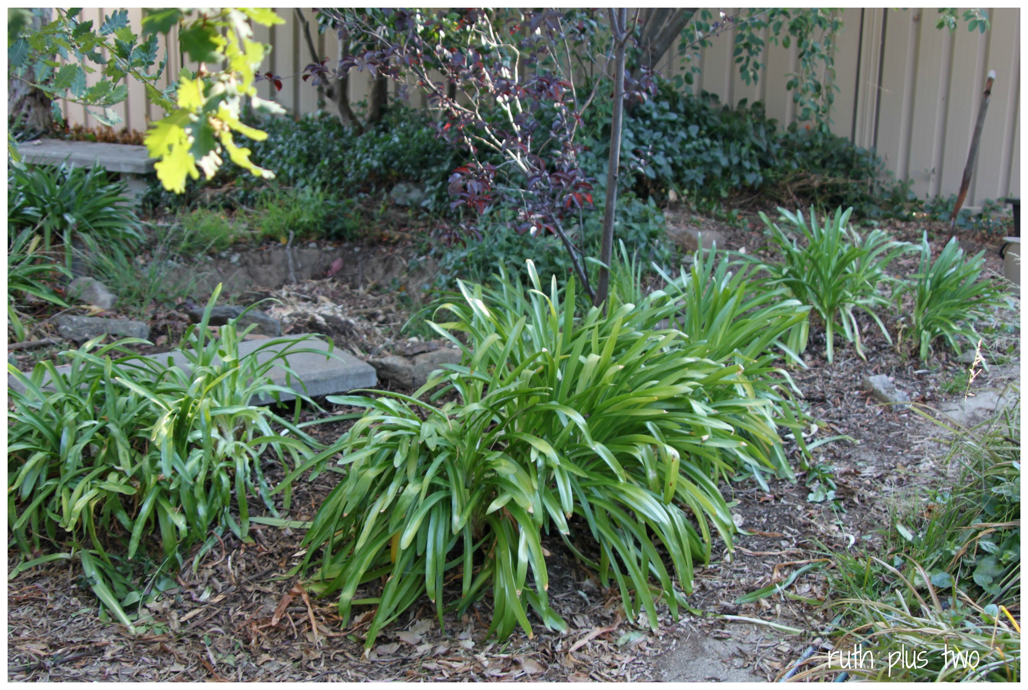 I managed to get rid of the Vinca which was taking over the agapanthus. Back in September: