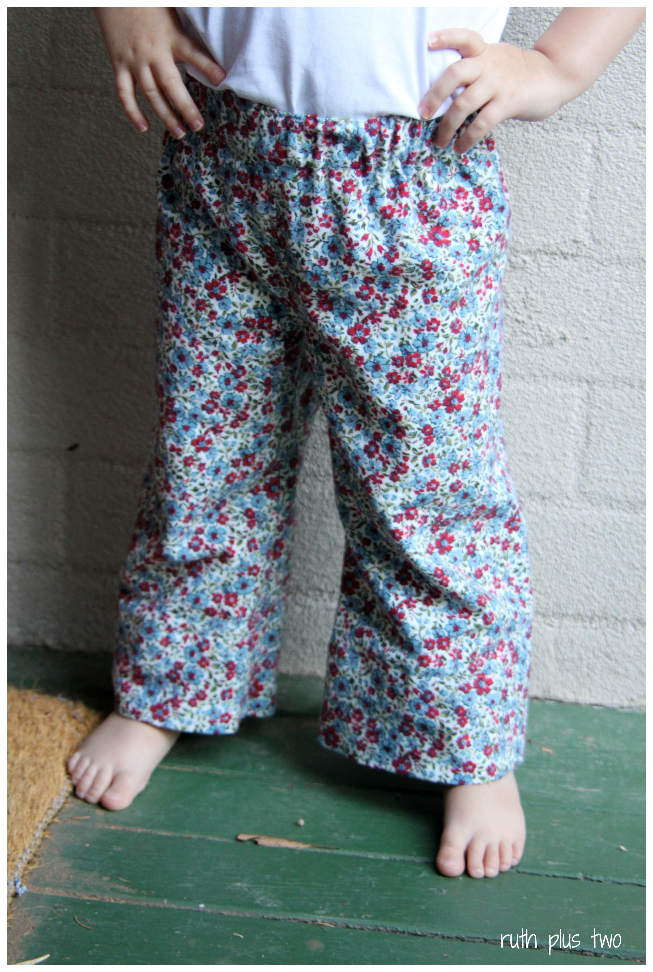 It’s been so hot that I’ve only got one photo from earlier in the week of the pants on Elena. I couldn’t bring myself to put the others on her.