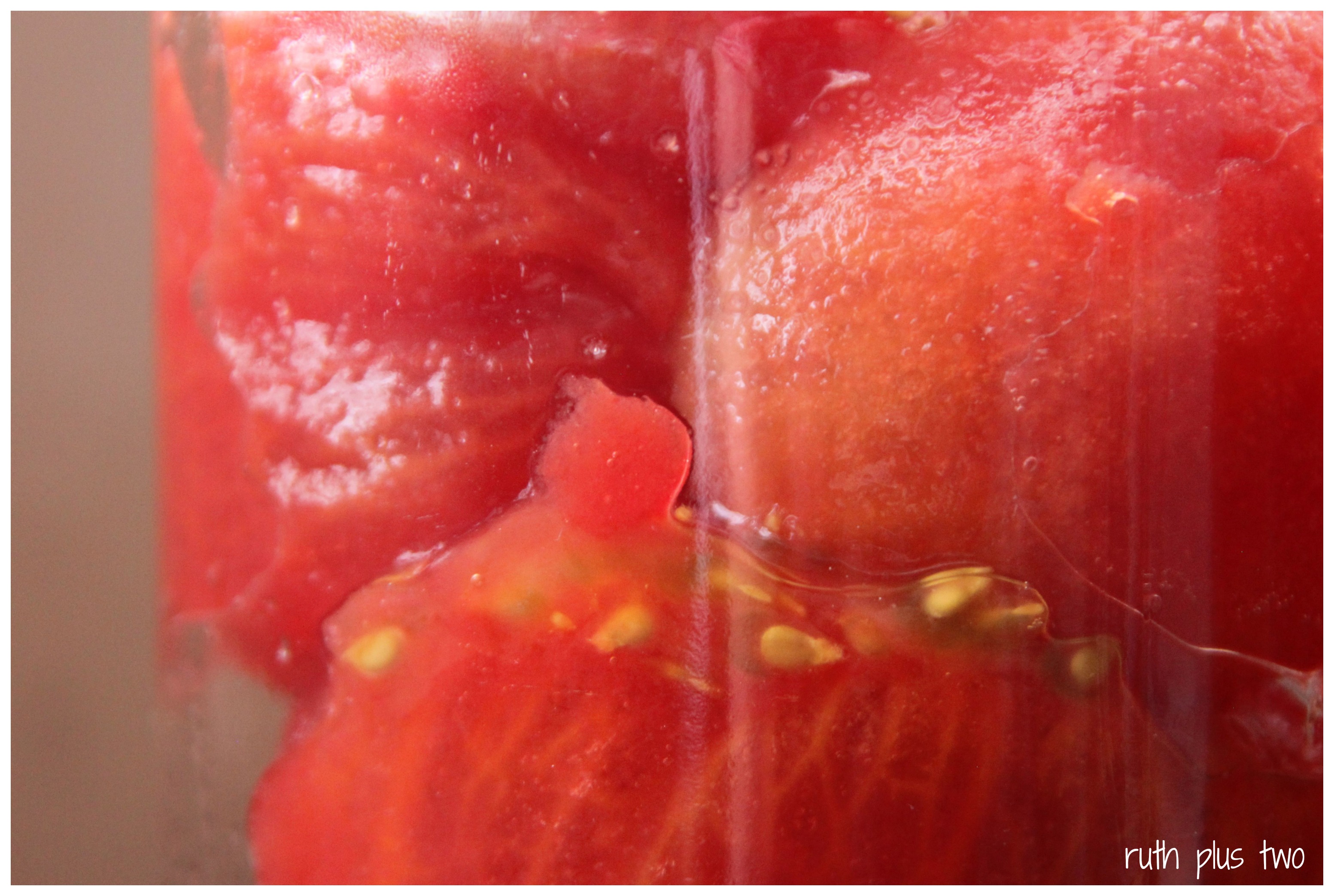 I love the pretty patterns which form as the tomatoes press against the glass.