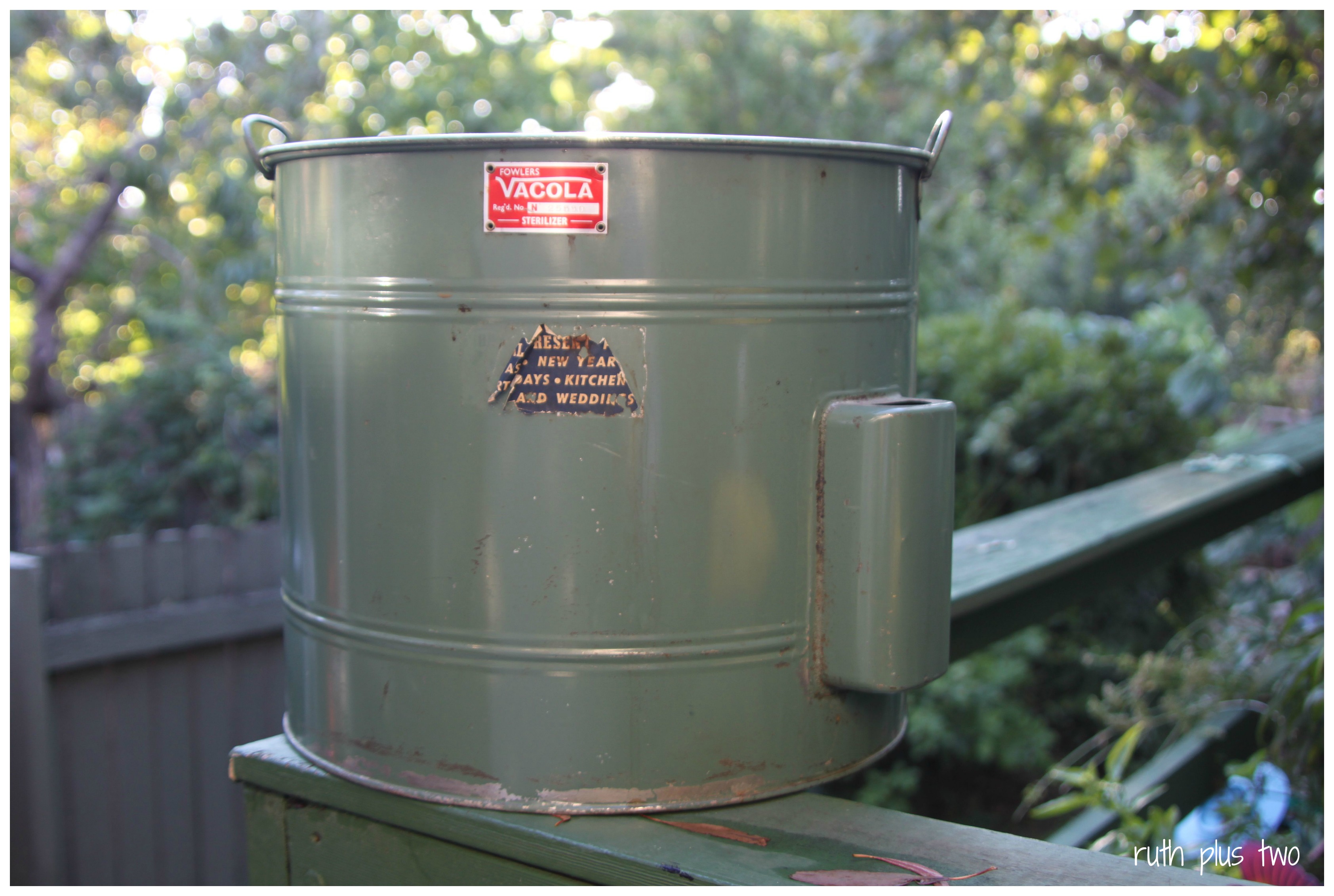 The other excitement of the weekend was scoring myself a vintage Fowler’s Vacola preserving pan on gumtree. I was a bit hesitant to spend the $35, but it was just too good of a deal to pass up (and two have since appeared with asking prices of $50 and $90, so now I’m extra happy about the price). It was a good week for Fowler’s stuff on the classifieds – I also managed to snag some (ummm…40…) jars for $2 a piece.