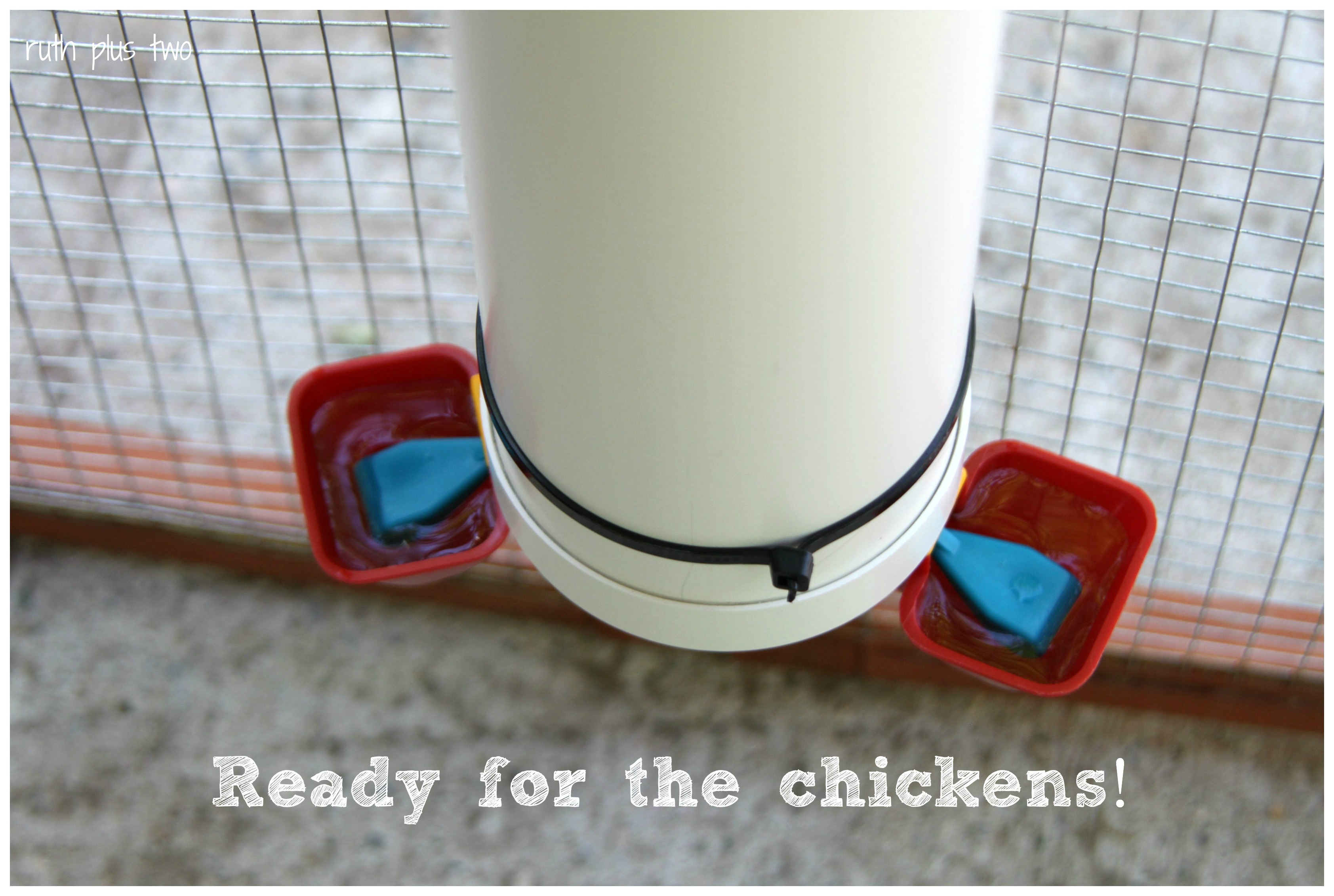 Pick a spot where the waterer will be out of the sun – you don’t want your water to heat up or your chickens won’t want to drink it.