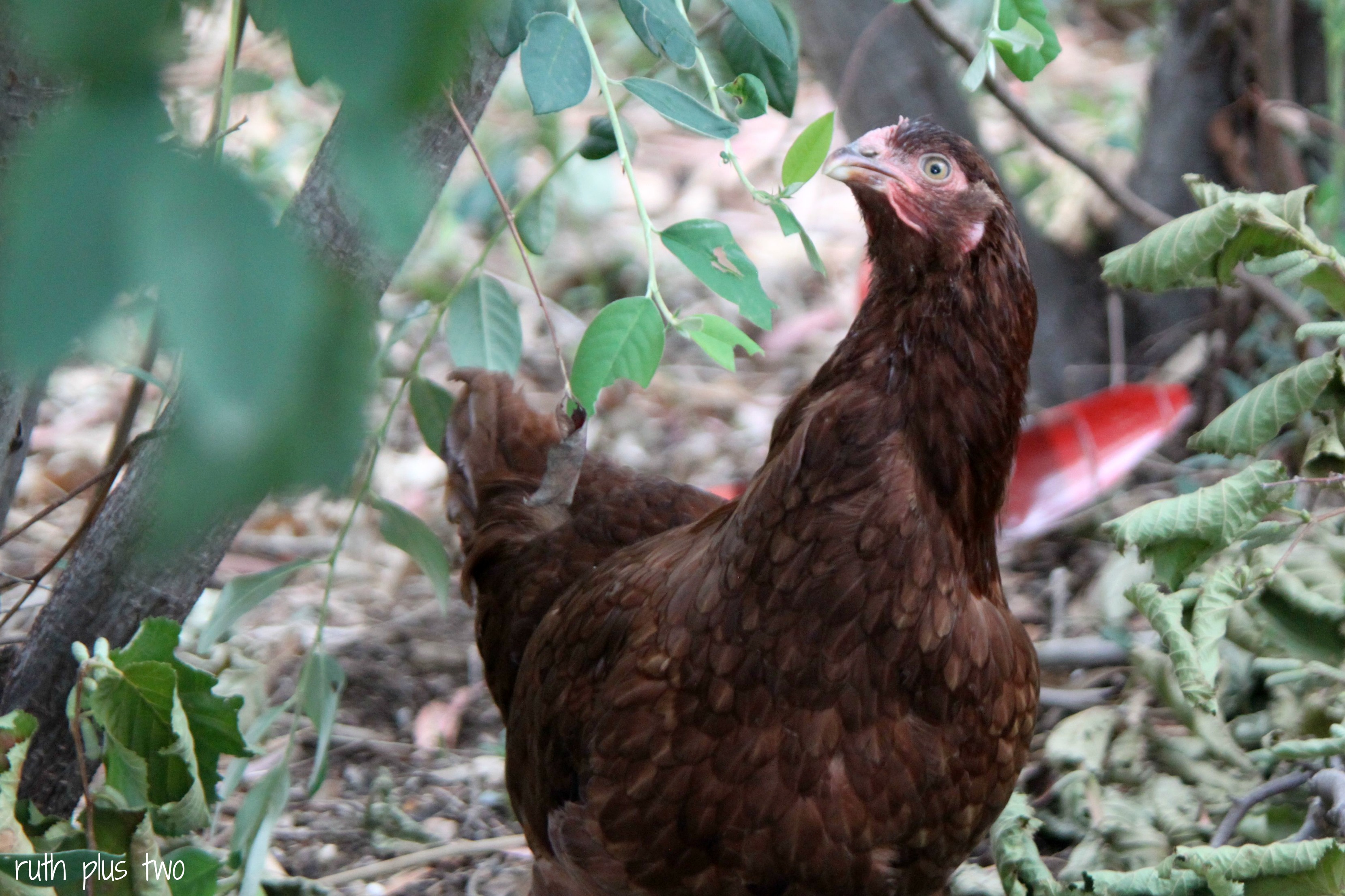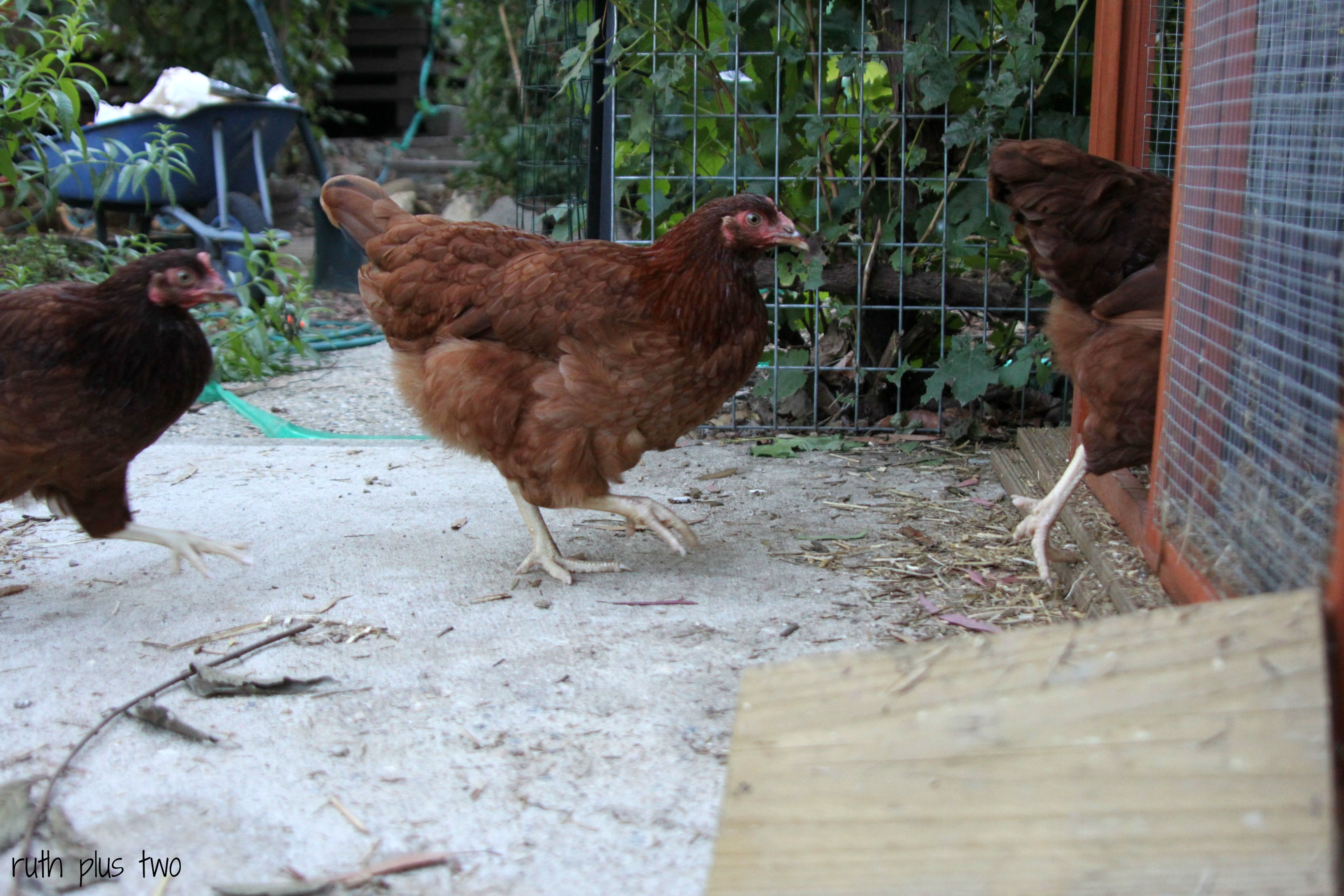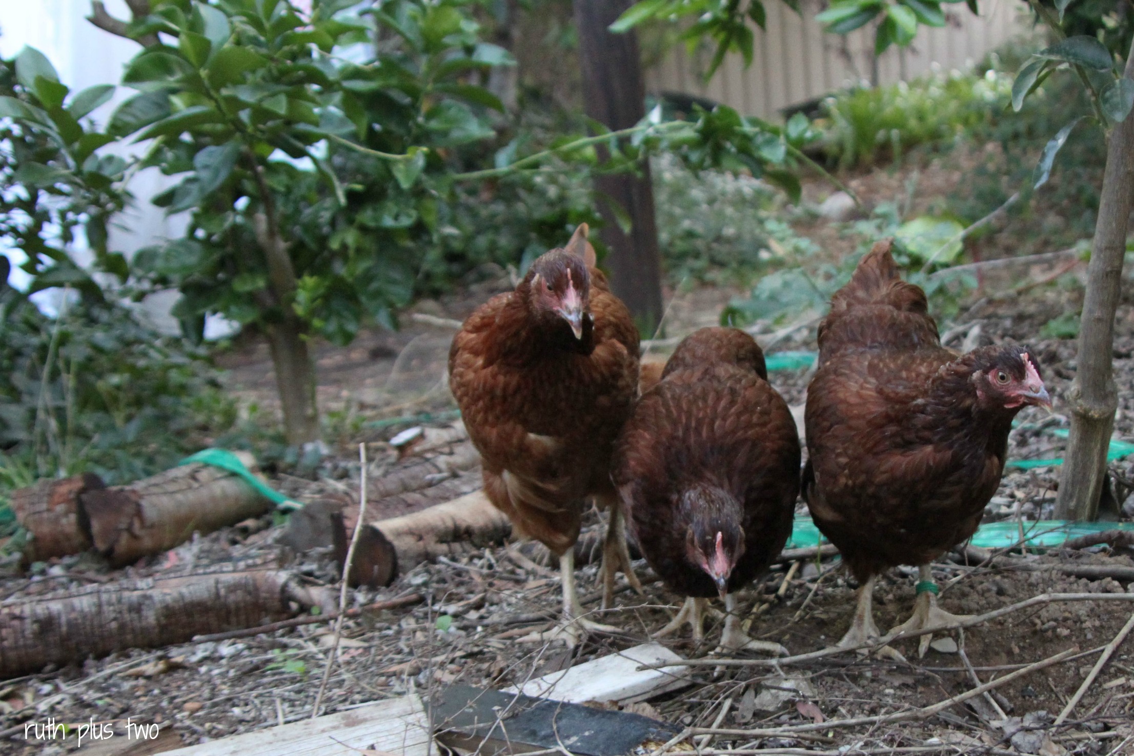 We’ve had a busy week with my parents in town. We’ve been potting up cuttings and seedlings, getting log-splitting lessons, constructing a feeder for the chickens, weather-proofing the run a little more, watching the chickens and waiting for the seasons to change. Those green leaves will soon be gone.