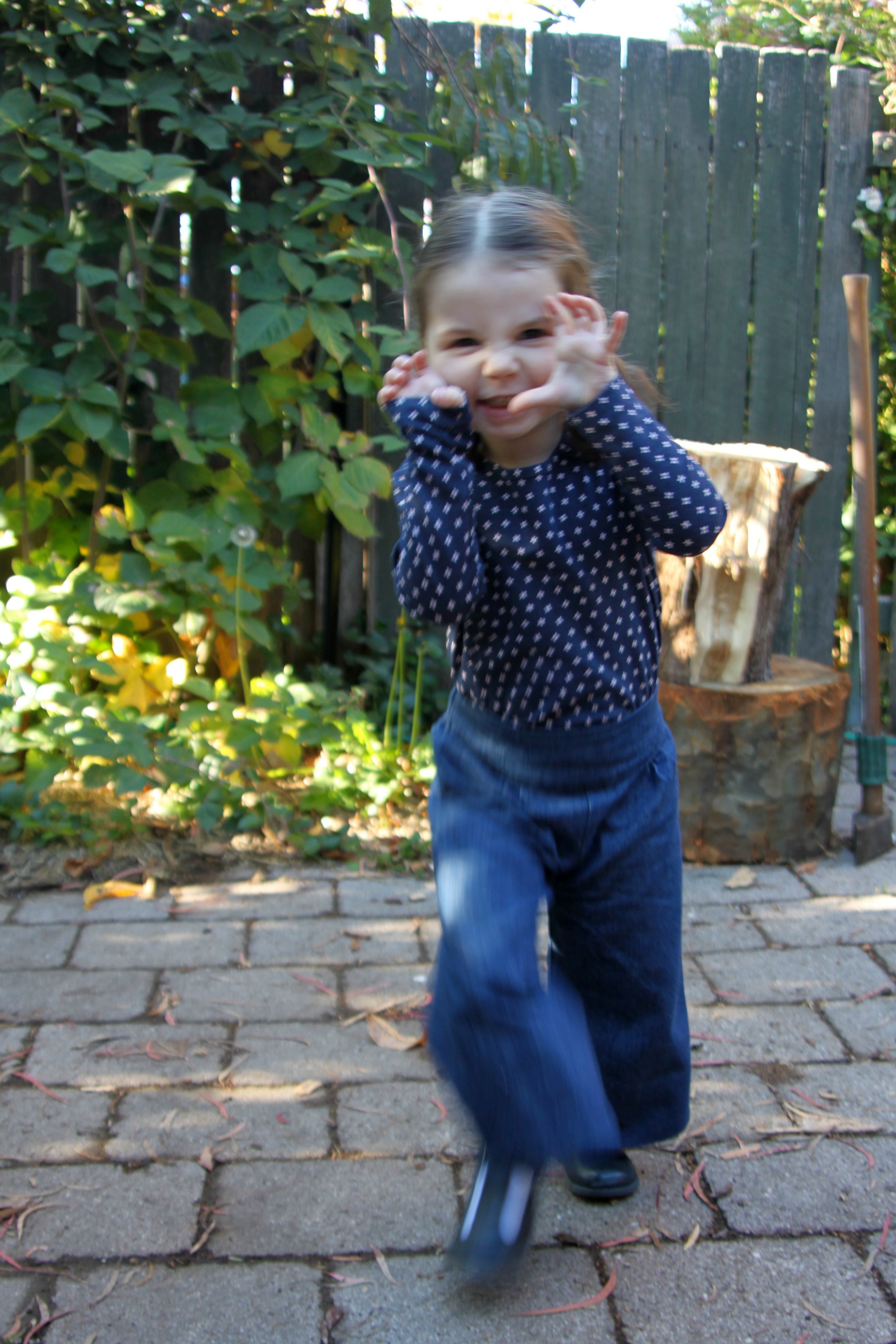 I love the outfit. I keep on looking at that pants pattern – they are so cute!
