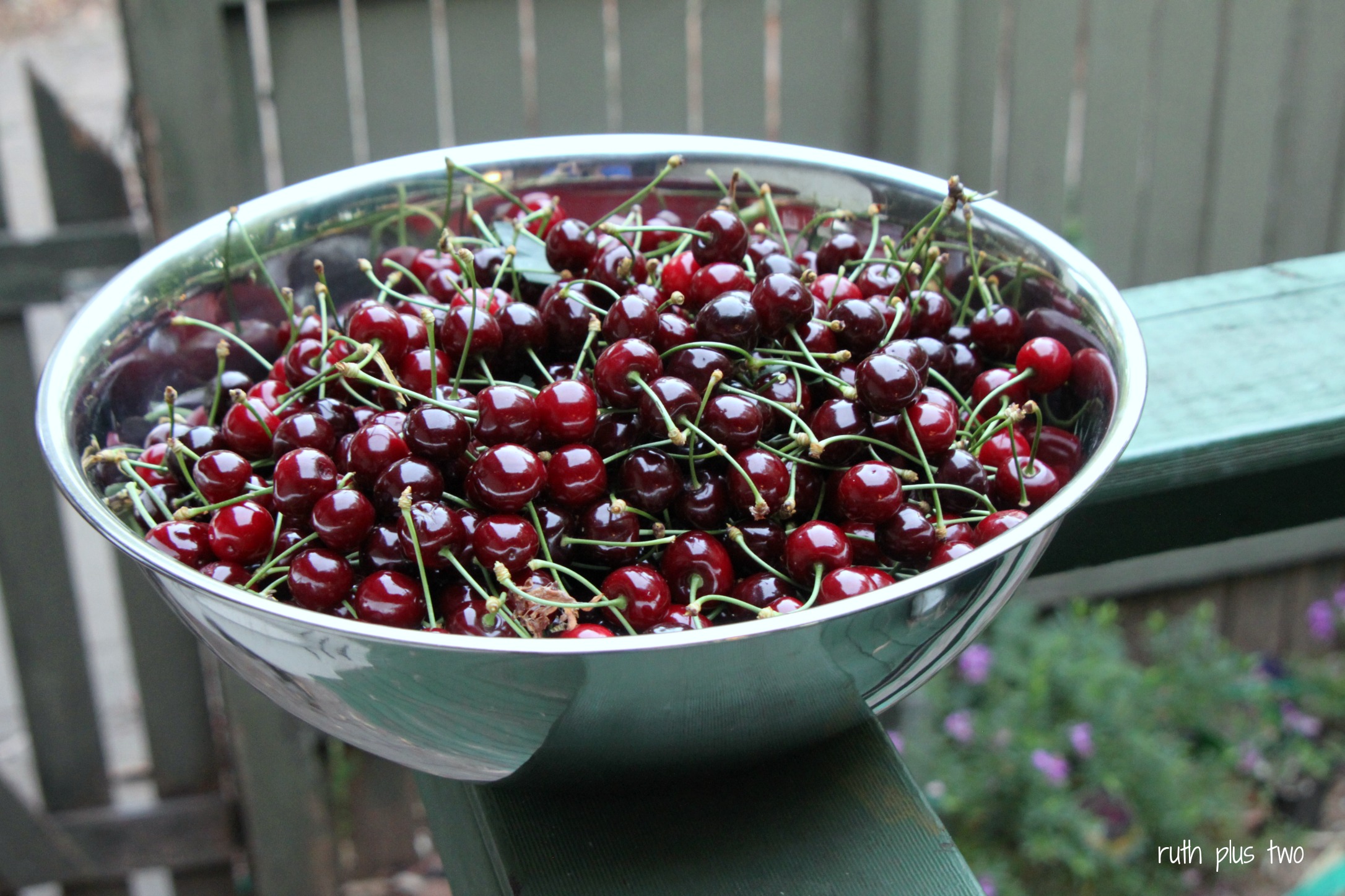 It’s cherry time at our place. Our tree keeps on giving and giving. This was tonight’s haul. You can’t really tell from the photograph, but this bowl is a massive caterer’s bowl. I think I’ll be handing out cherries to everyone I see for the next week or so!